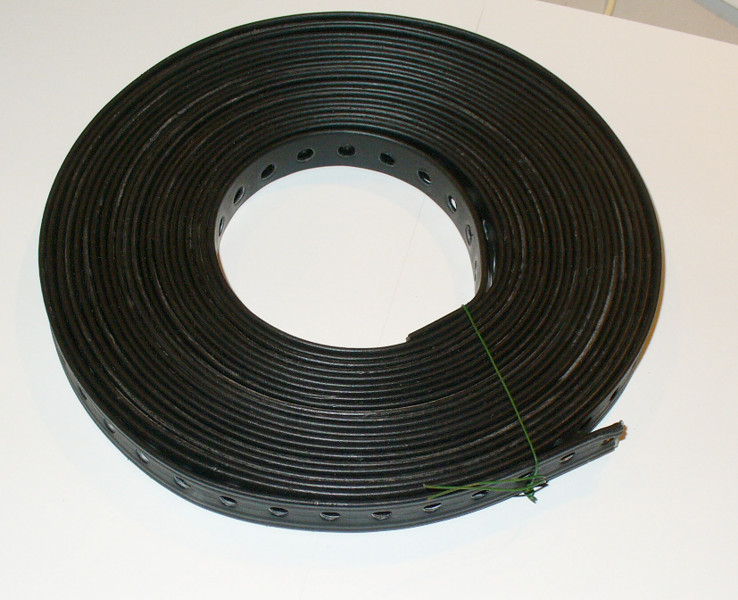 Lochband kunststoffummantelt 19 mm x 10 m Lochdurchmesser 6 mm, schwarz mit verzinktem Stahlkern, kunststoffummantelt mit beiderseitig längslaufenden Auflagerippen ( Korrosions- und Schalldämmung ) Werks-Nr. 306-0019
