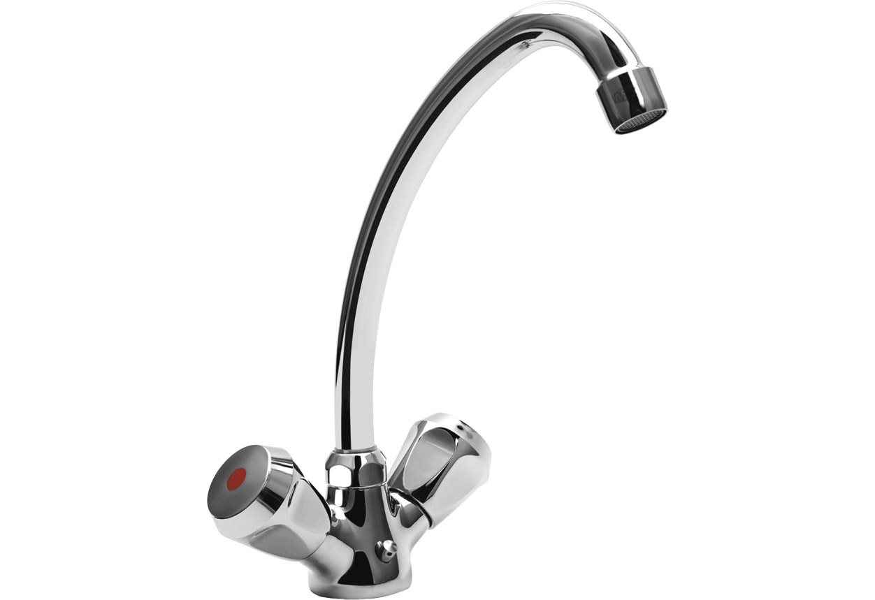 Spültisch-Einlochbatterie MS vc, DN 15 HU-Rohrauslauf 200mm,Haubengriffen isol. Kettenöse, mit Mischdüse