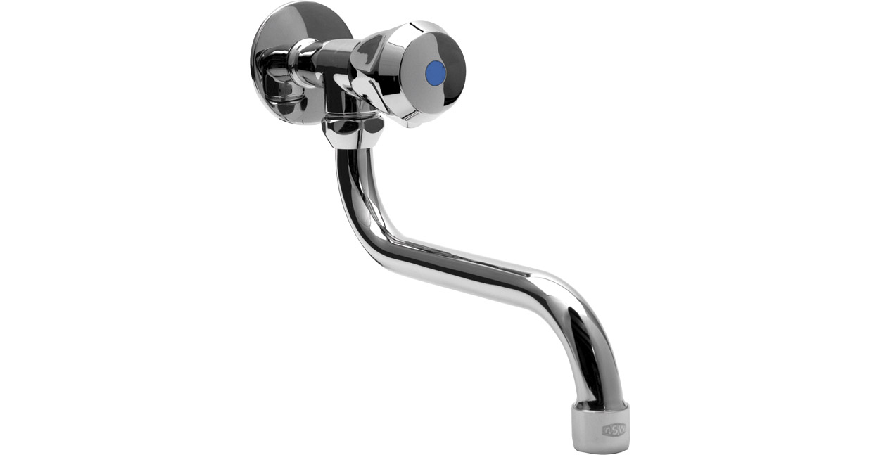 Wandschwenkventil Messing vc DN 15 Haubengriff isoliert Markierung blau mit Mischdüse